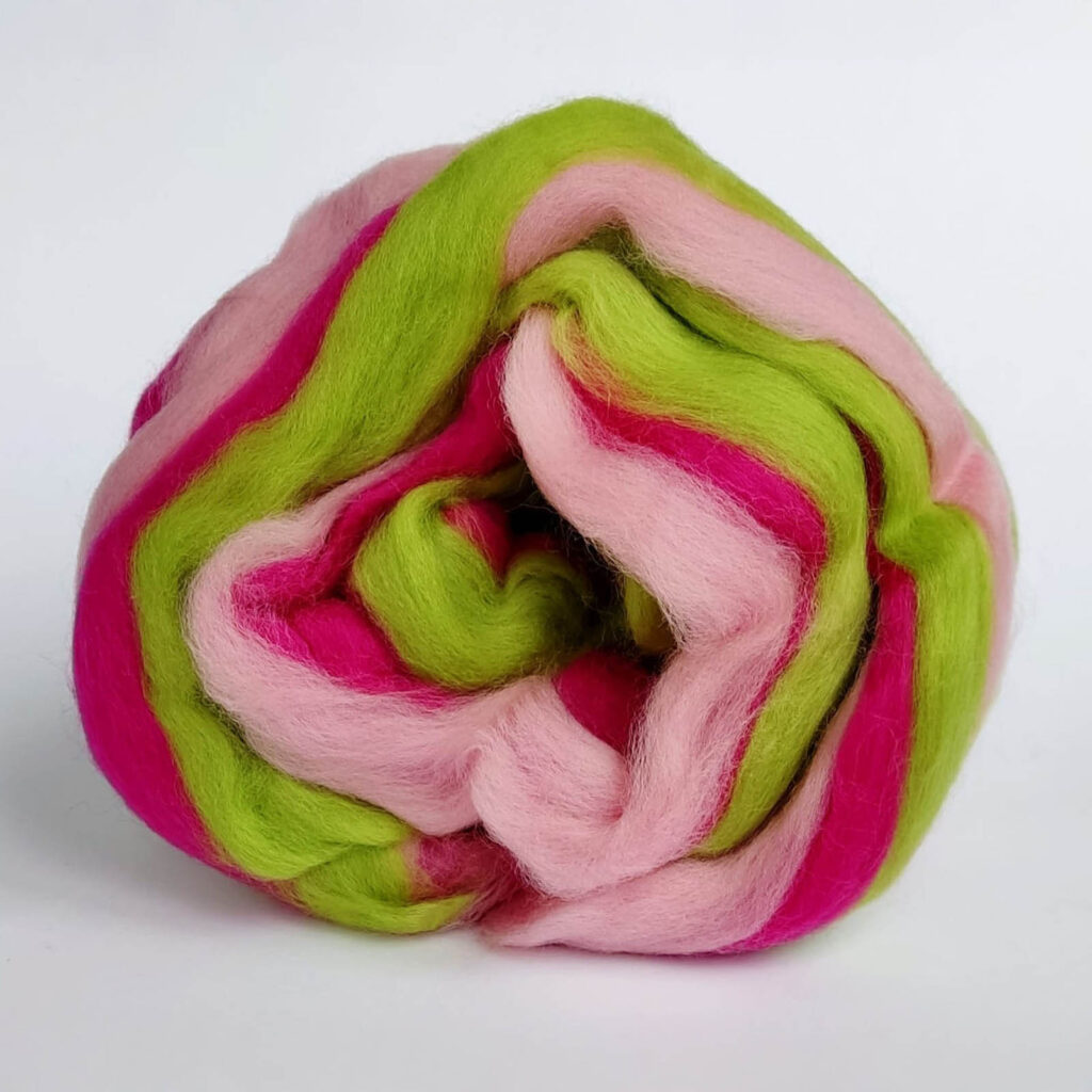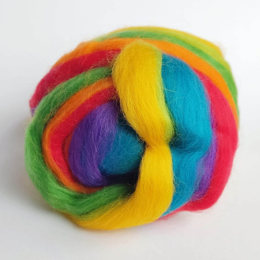 Lana peinada con divertidas combinaciones de colores para fieltro con aguja, húmedo, hilado y tejido con las manos. Muy atractiva para manualidades y trabajar con niños.