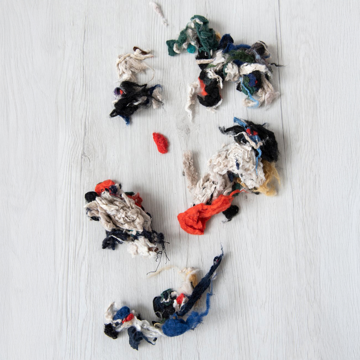 Cada paquete contiene 500g. de lana de desecho y vellón en una variedad de colores.